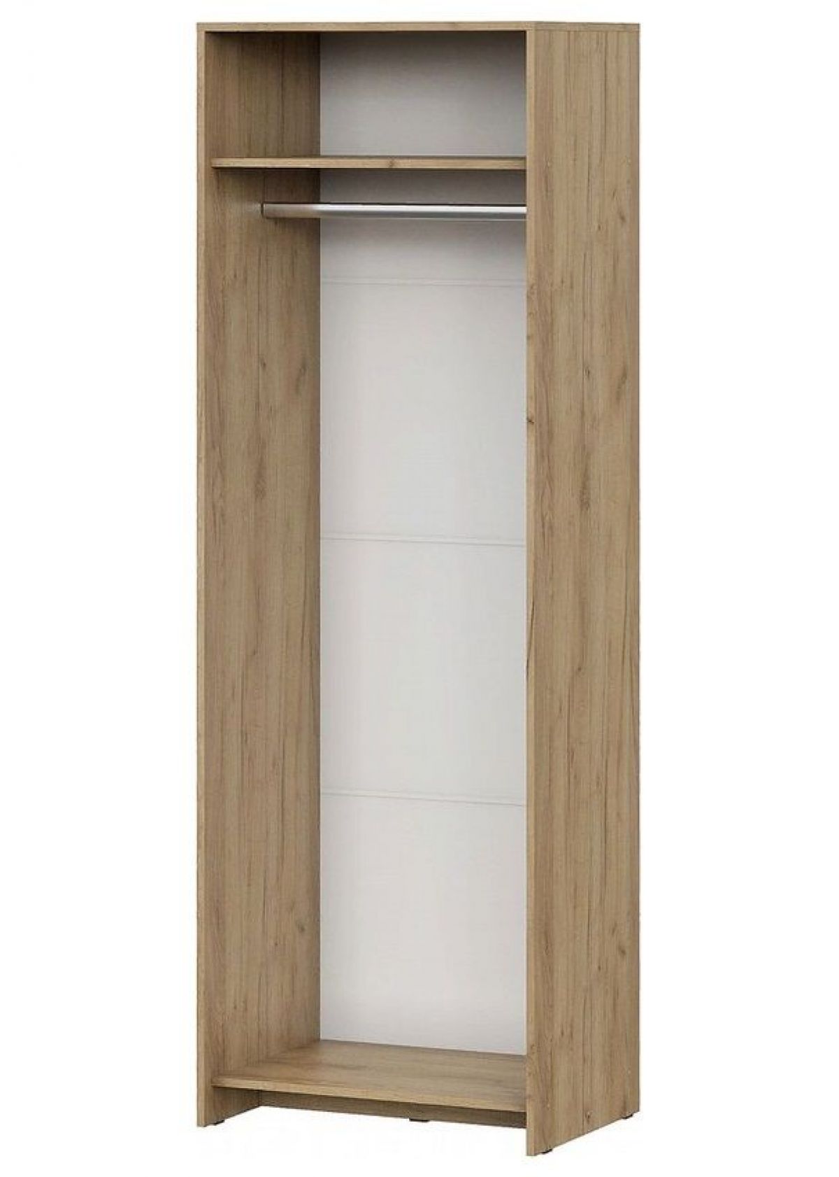 Внутри шкафа располагаются одна стационарная полка сверху и металлическая штанга.